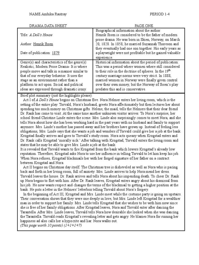 30102020 Drama Online - A Dolls House Student Edition 231 A Dolls House Student Edition Written by Henrik Ibsen Translated by Michael Meyer DOI. Learn vocabulary terms and more with flashcards games and other study tools. The Editors of Encyclopædia Britannica.